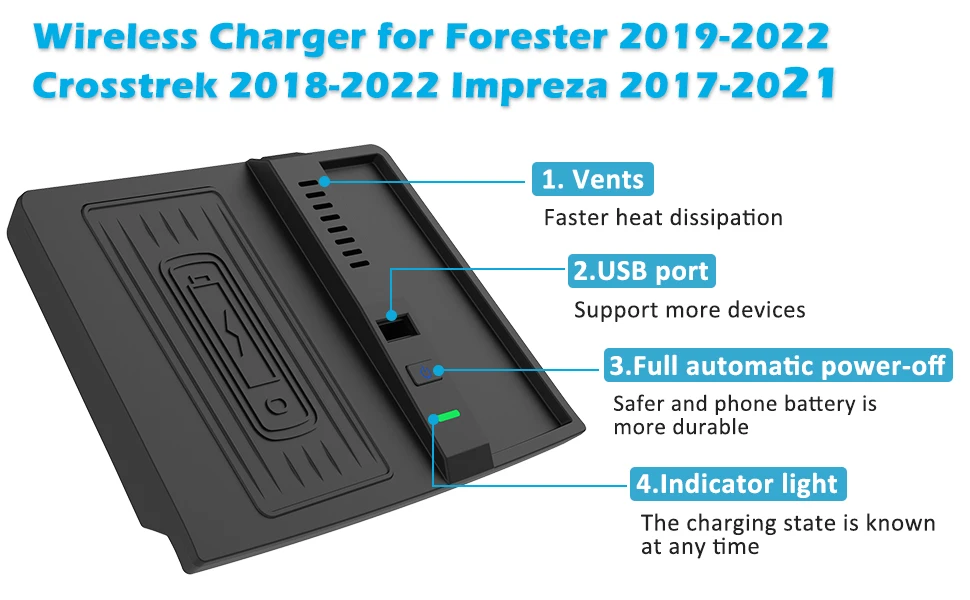 For Subaru Forester SK 5th gen 2019 2020 2021 2022 2023 Car Wireless Charger Qi Mobile Phone Wireless Charging Pad Accessories