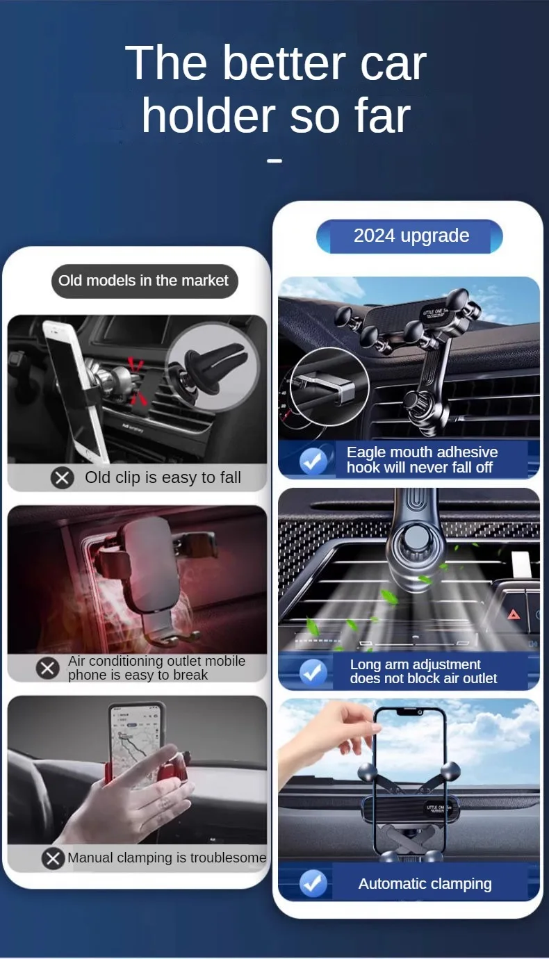 Gravity Car Phone Holder for 4.7-7 inch Mobile Phone Car Air Vent Phone Mount Universal Shockproof GPS Clip Smartphone Stand
