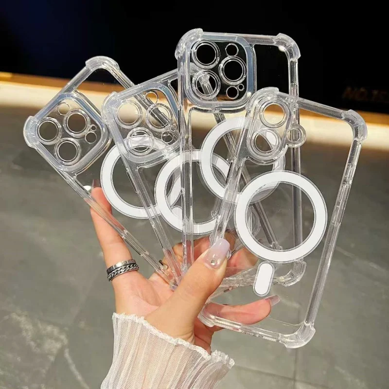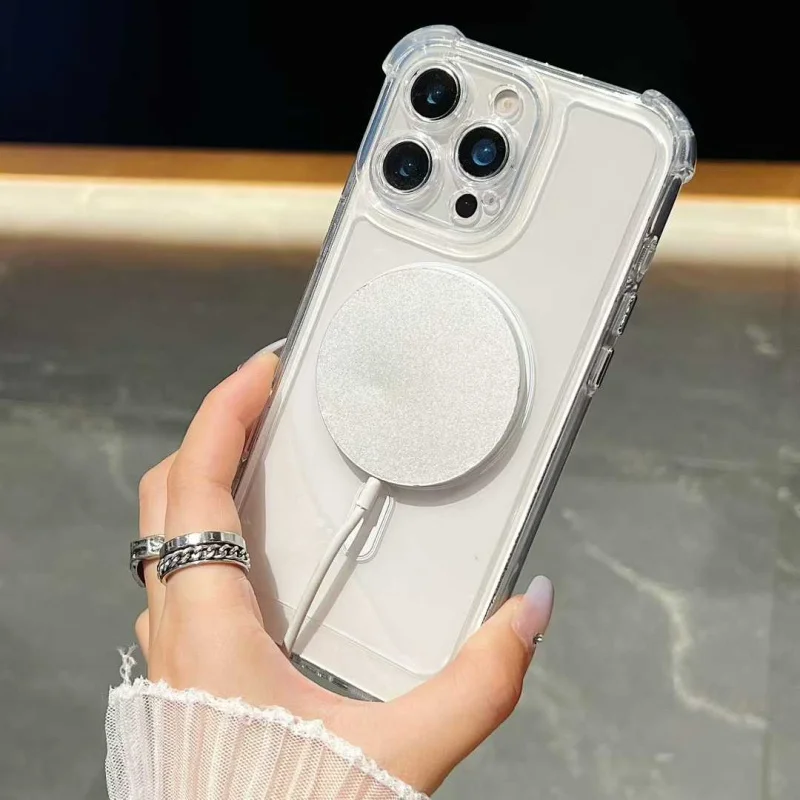 Hot Selling Acrylic Hard Cover Four Corner Mobile Phone Case for iPhone 17 Pro Max Precise Hole Clear Space Magnetic Case